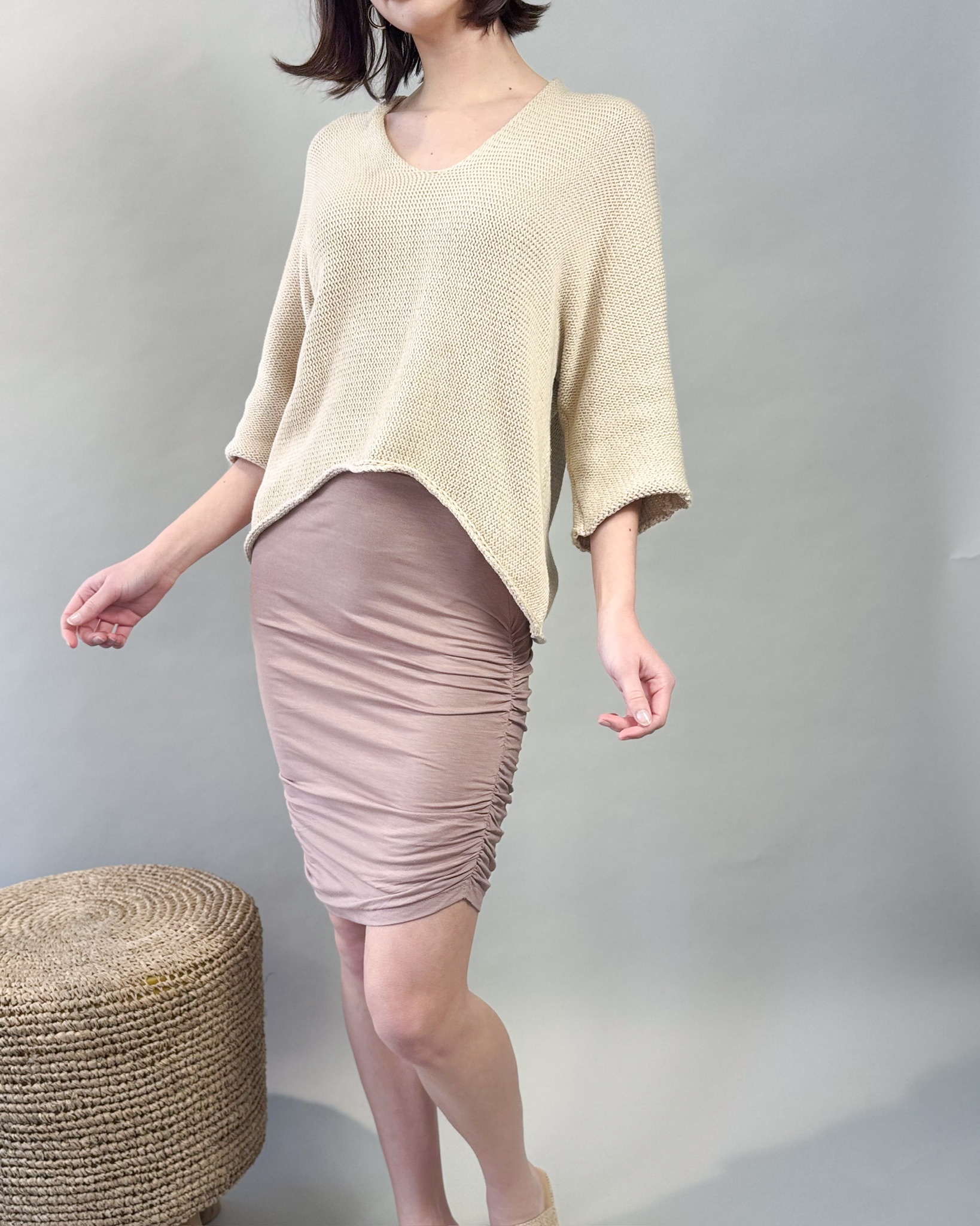 Effortlessly chic and incredibly comfortable, the Figwood Aries Sweater is a wardrobe essential for laid-back elegance. Designed with a relaxed silhouette and crafted from sustainably sourced materials, it offers a breathable, textured knit perfect for year-round wear. The soft drape and versatile fit make it easy to style with everything from flowy skirts to your favorite denim. Whether you're dressing up for brunch or unwinding at home, the Aries Sweater delivers timeless style with a sustainable edge. Embrace the beauty of small-batch, artisan-crafted fashion with Figwood's commitment to eco-friendly craftsmanship.