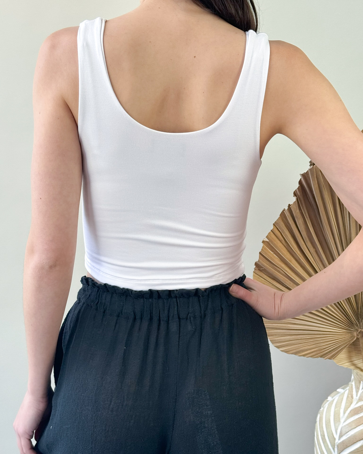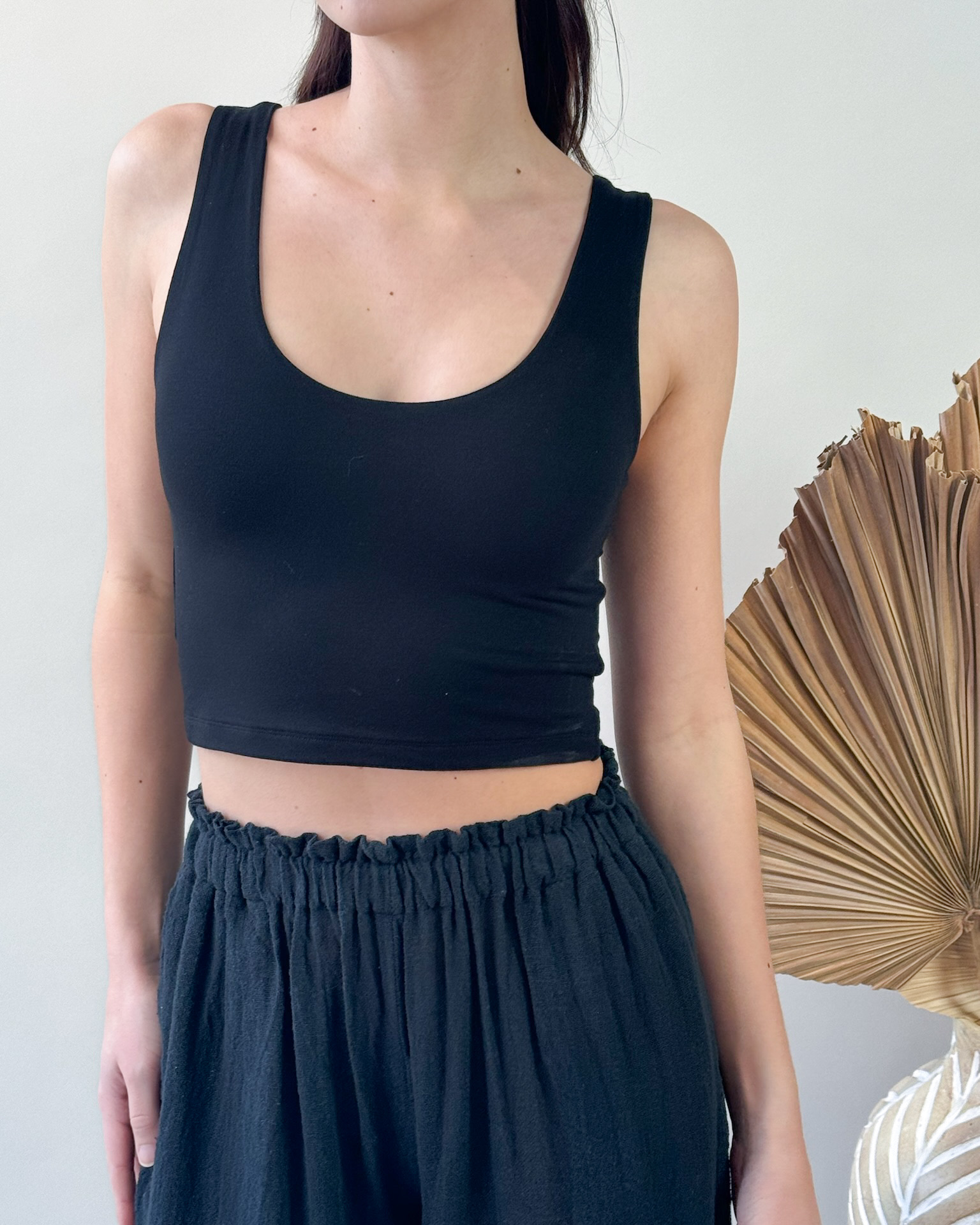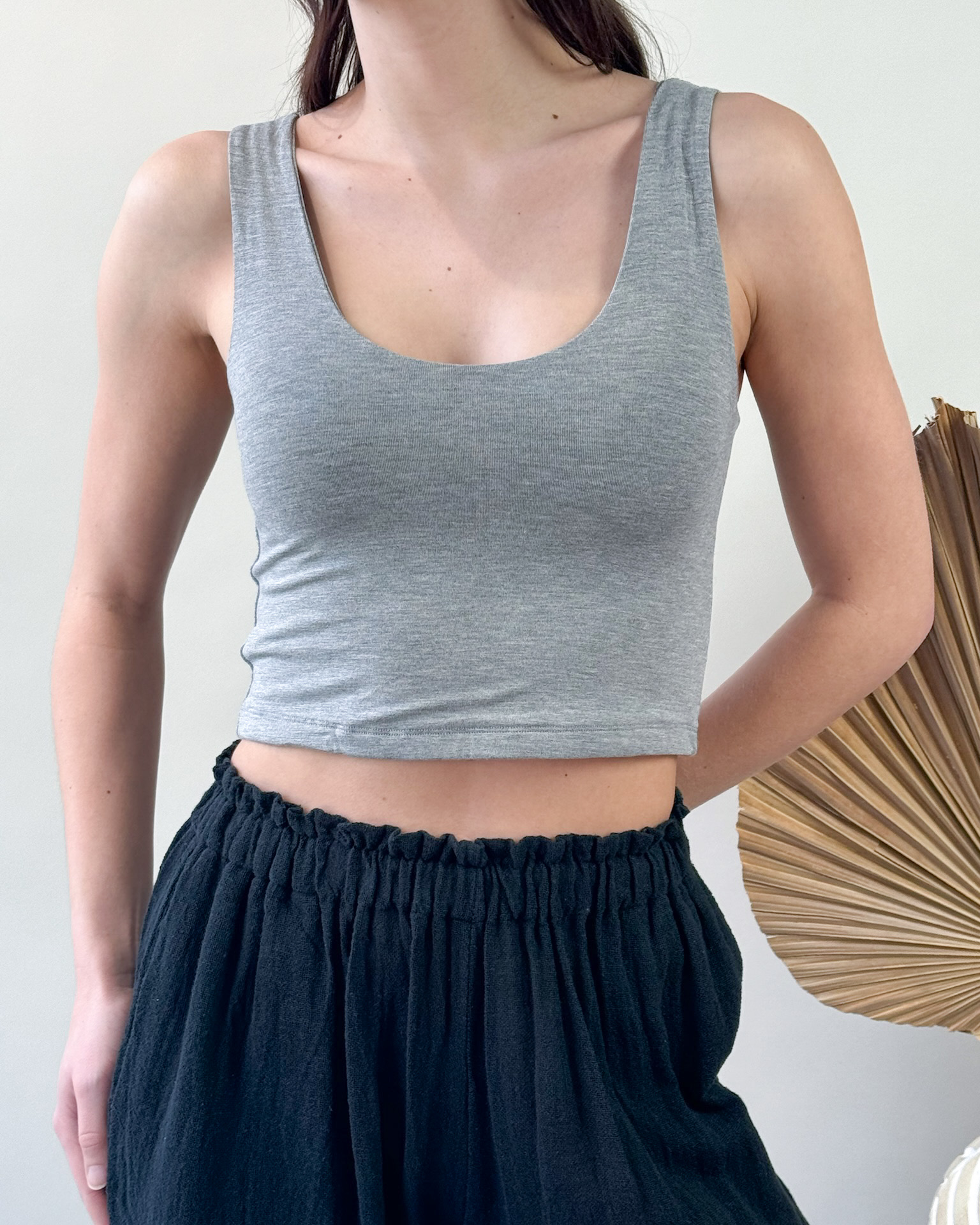 A go-to base layer with a clean, flattering fit, the Figwood Double Layer Cropped Tank is designed for both comfort and versatility. Made with a soft, stretchy fabric, the double-layer construction offers smooth coverage and a secure feel without added bulk. The cropped length and scoop neckline create an easy, modern silhouette that pairs effortlessly with high-waisted pants, skirts, or loungewear. Simple, supportive, and easy to style, it’s an everyday essential you’ll reach for again and again.