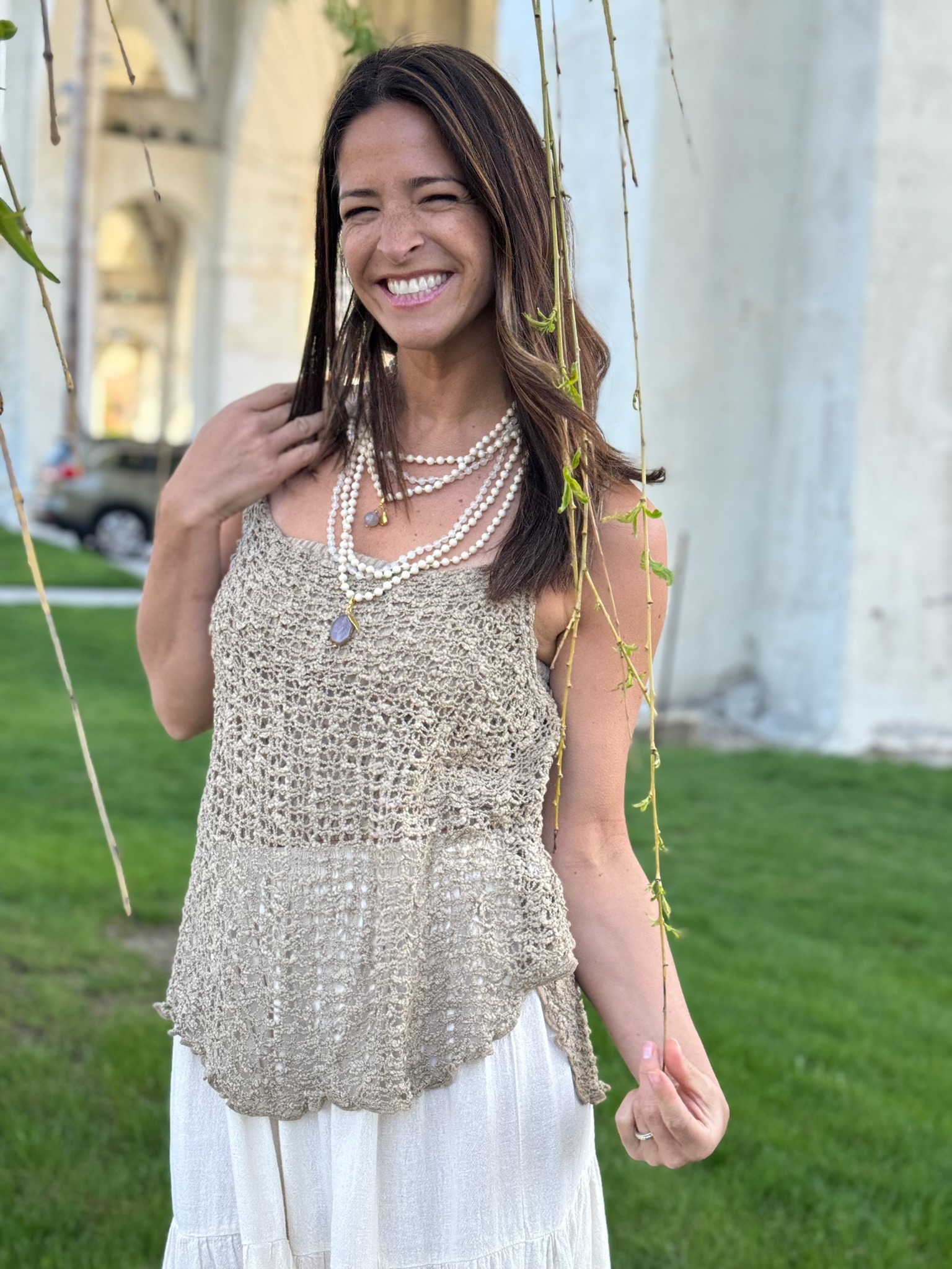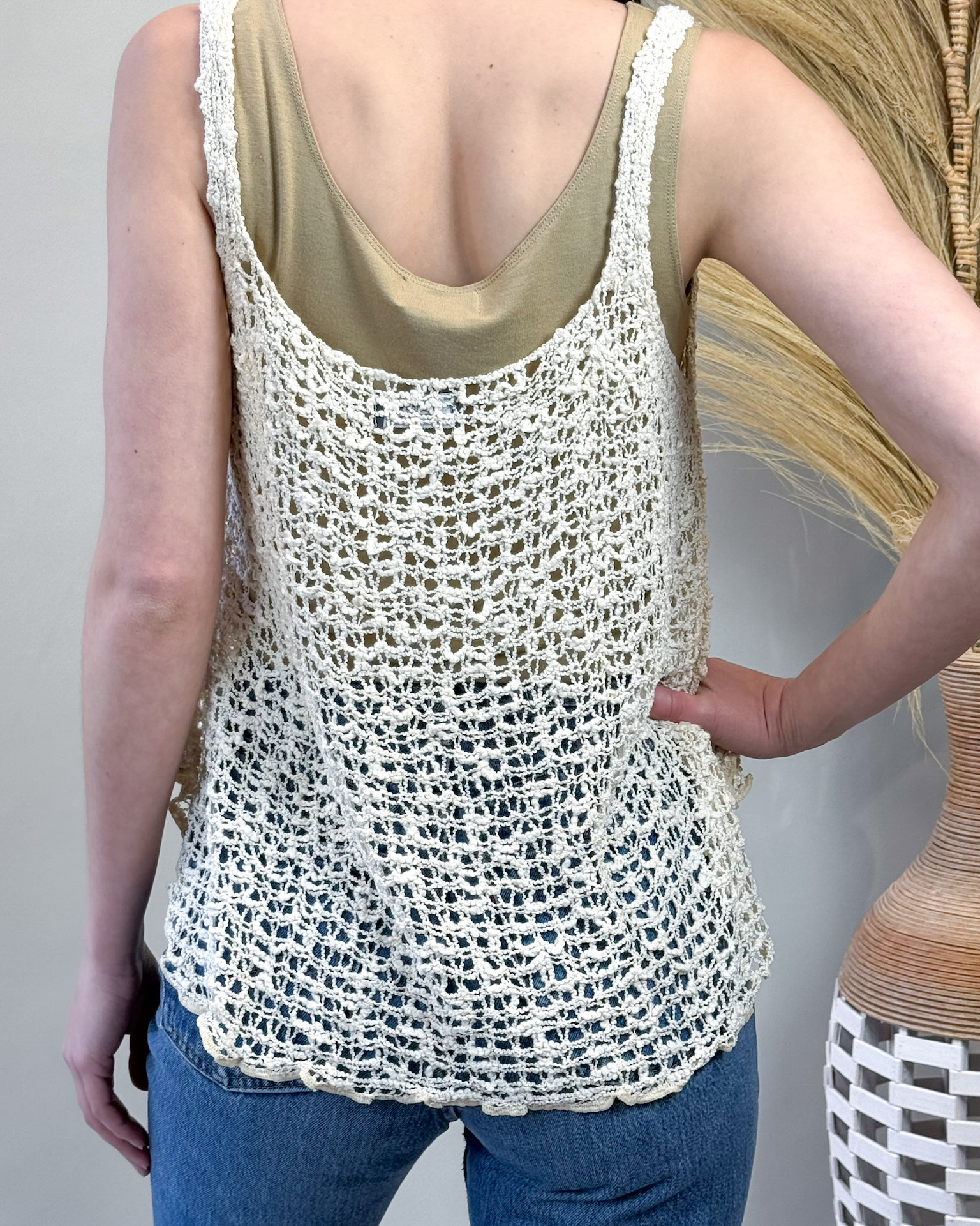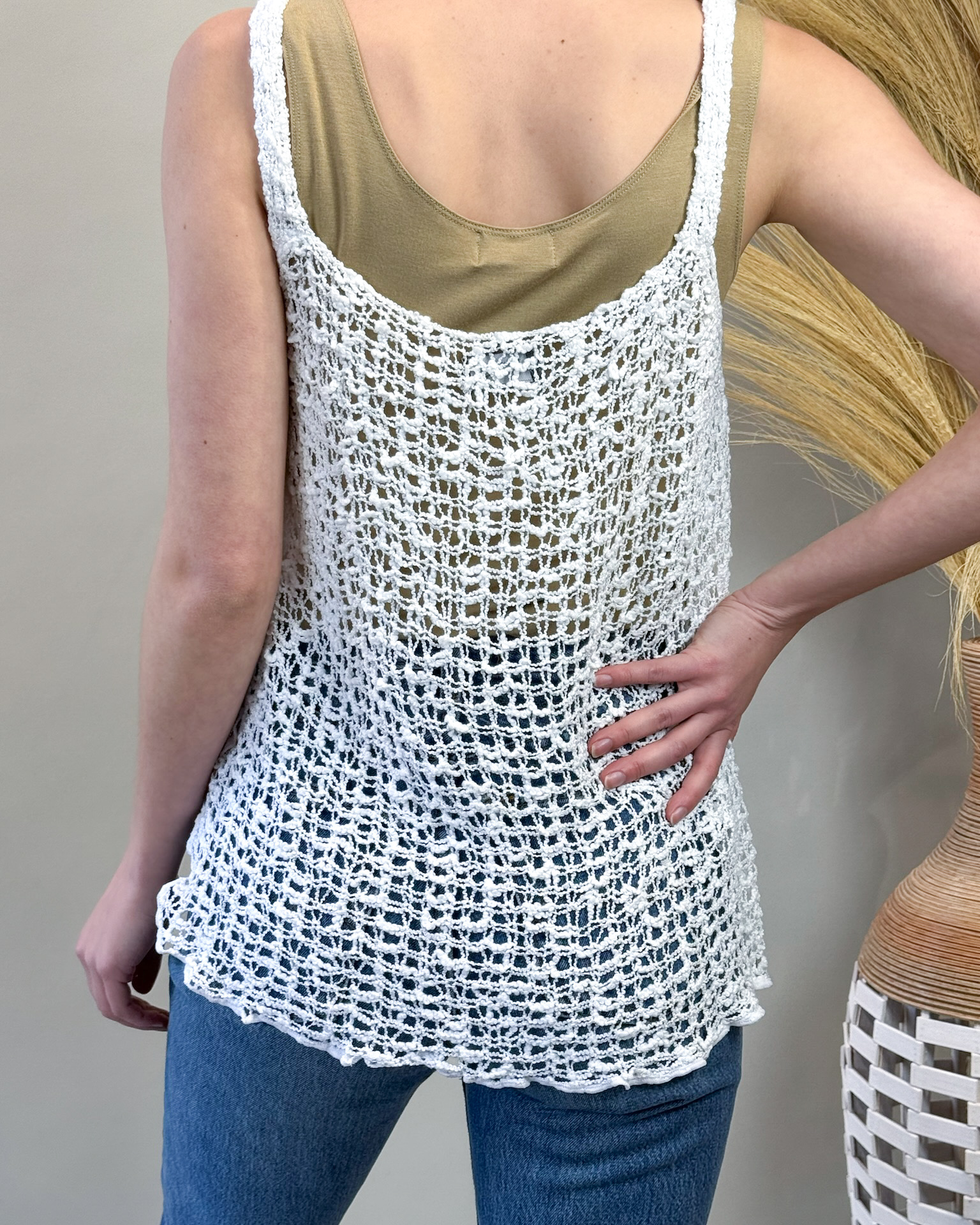 The Iris Tank is essence of festival vibes and boho chic. Crafted with a wide, loose knit and sleeveless design, this tank exudes effortless style and comfort. Perfect for layering over your favorite tank tops or pairing with denim shorts, it adds a touch of bohemian flair to any outfit. Elevate your summer wardrobe with the free-spirited charm of our Iris Tank, designed to bring festival vibes wherever you go.