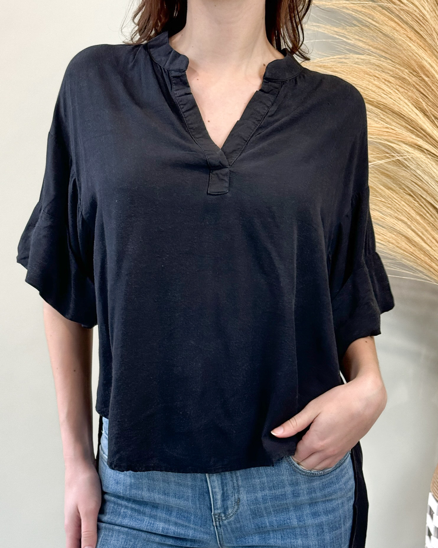 The "It Had To Be You Top" is a versatile piece destined to become your spring and summer essential. With its short cuffed sleeves and classic collar, it exudes timeless charm and sophistication. The split neck and high-low styling add a modern twist, making it perfect for pairing with skirts or shorts. Crafted from lightweight fabric, it ensures breathability and comfort on warm days. Elevate your seasonal wardrobe with the effortless style of our "It Had To Be You Top," designed for chic versatility and easy elegance.