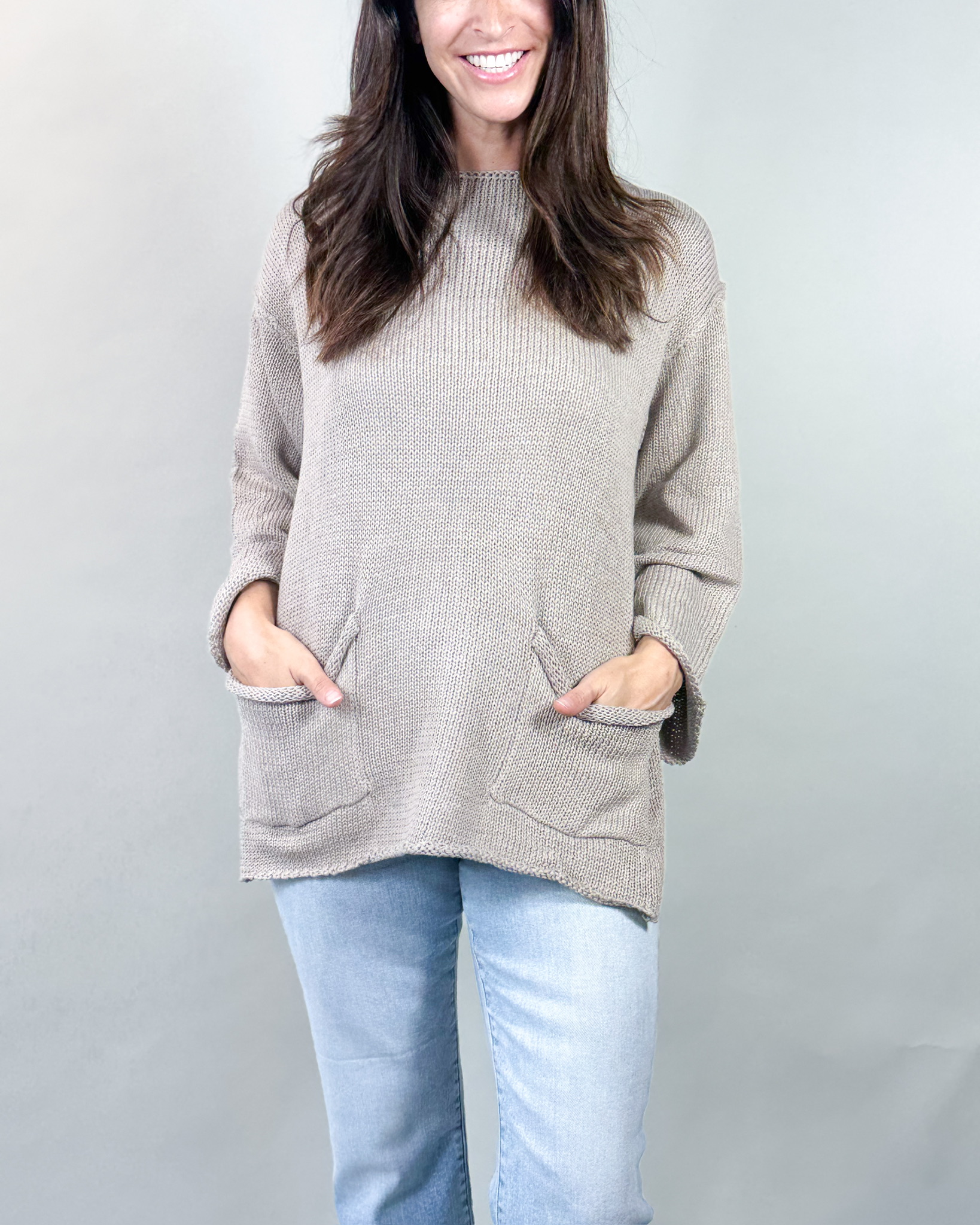 Cozy meets casually polished in the Jaki Sweater—your go-to knit for laid-back days and easy layering. With a relaxed fit, front patch pockets, and a slightly rounded hem, Jaki delivers everyday comfort with thoughtful detailing. The textured stitch adds depth, while the mid-weight cotton blend makes it ideal for cool mornings and coffee dates.