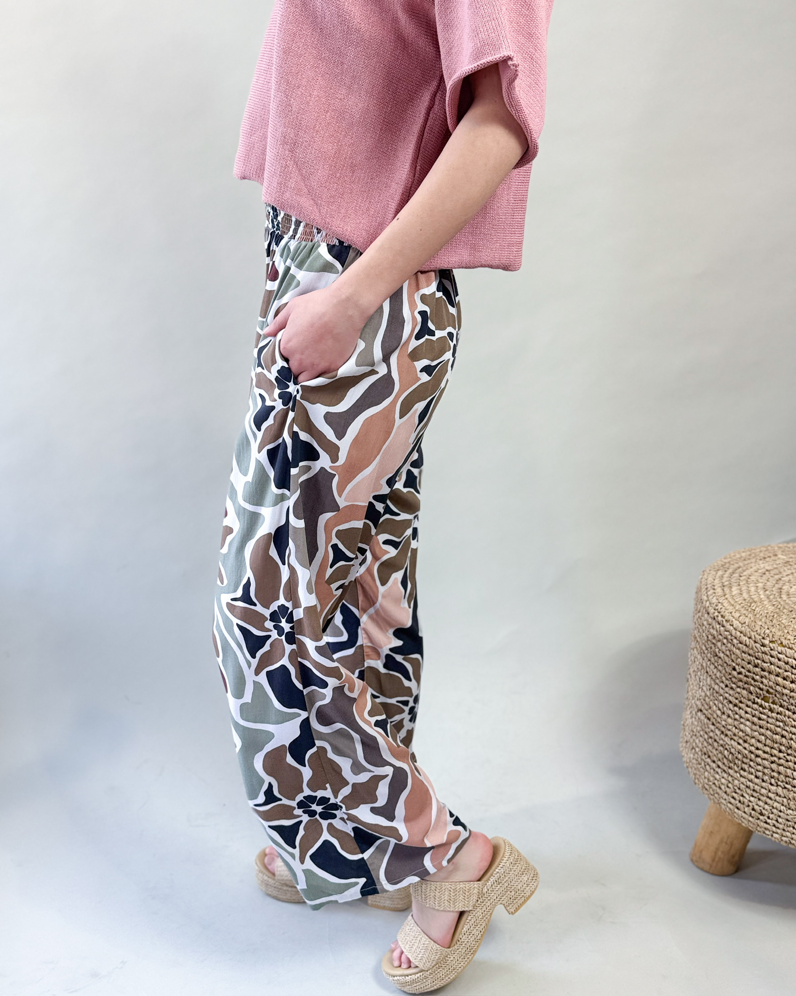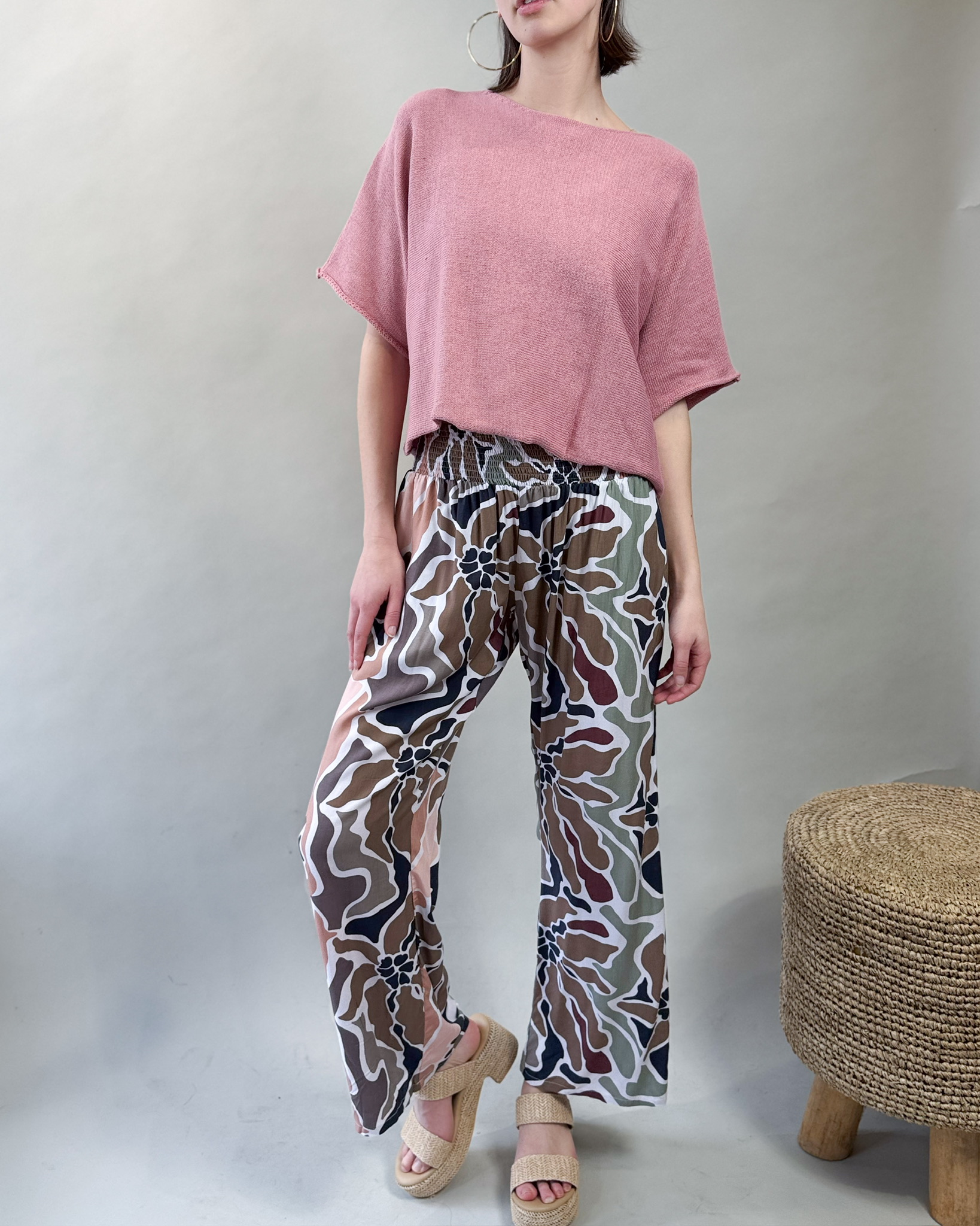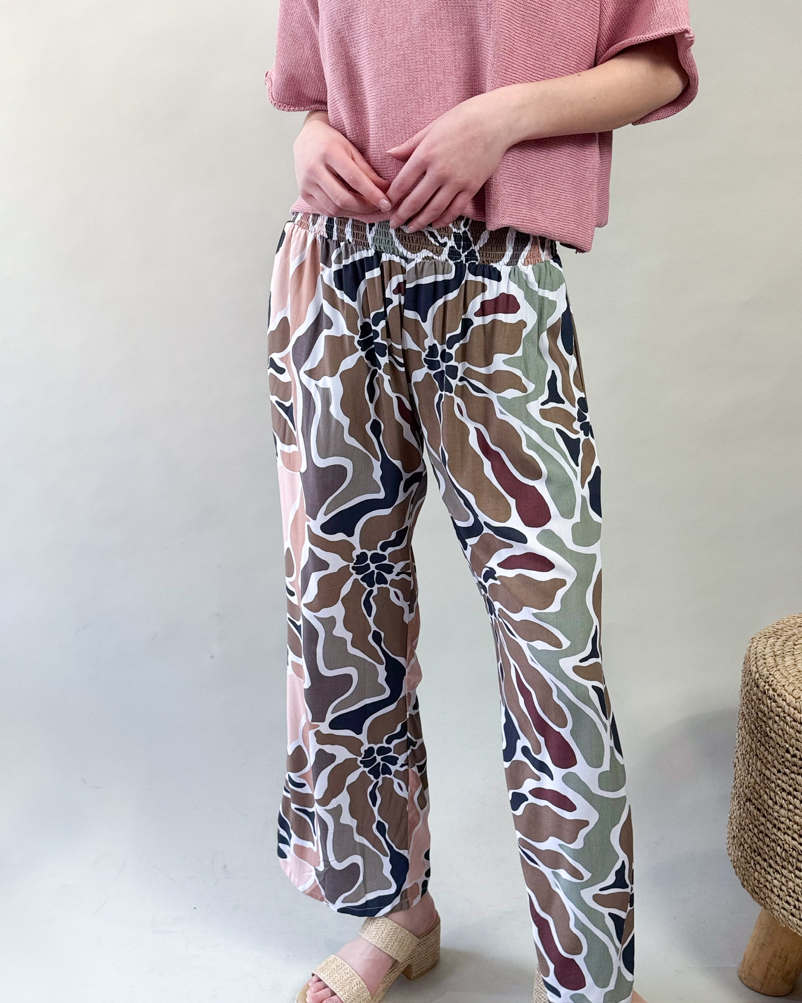 Available in a bold, nature-inspired print and a timeless solid blush, the Java Pants pair perfectly with your favorite Figwood tops for a laid-back yet polished look.