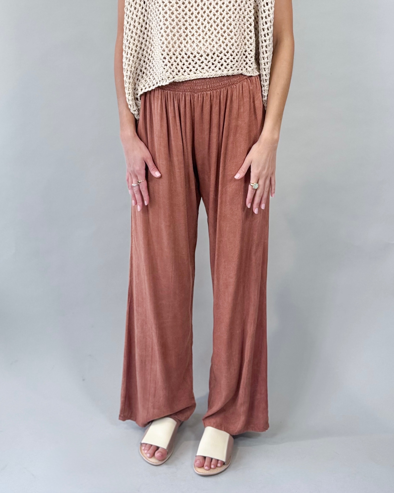 Flowy free-spirited, and effortlessly chic—the Java Pants are your go-to for relaxed sophistication. Designed with a breezy, wide-leg silhouette, these pants move with ease, offering all-day comfort with an elevated touch. The smocked elastic waistband ensures a flattering, flexible fit, while the lightweight, sustainable fabric keeps things breathable and soft.