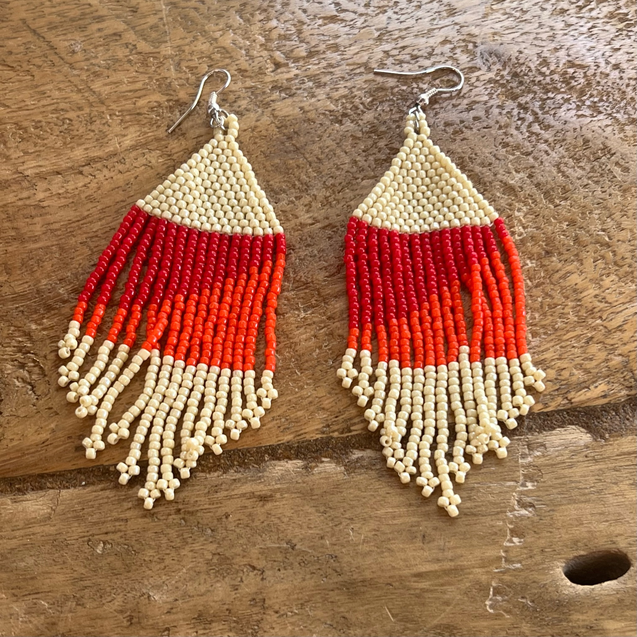 Choose Options seed bead fringe earring MSRP: Was: Now: $22.00 long fringe seed bead earrings choose from three different colors