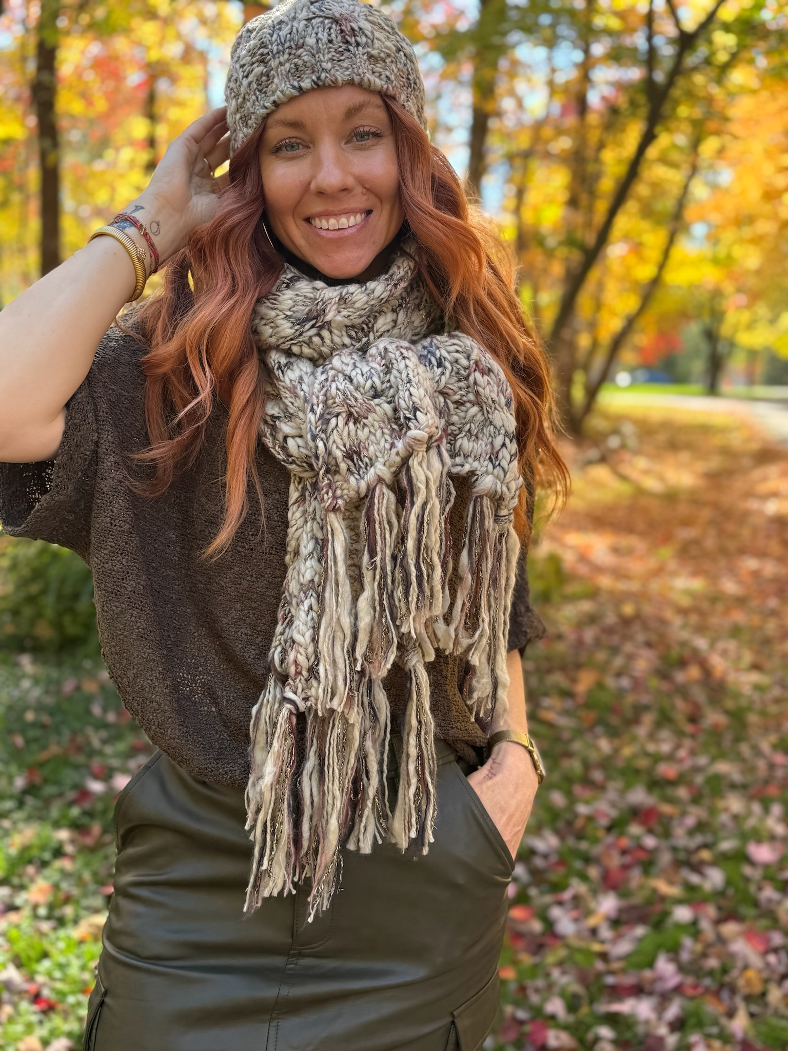 The Figwood Keyla Hat and Scarf set brings cozy comfort and timeless style to your cold-weather wardrobe. Crafted from a thick, chunky knit in soft neutral tones, each piece offers the perfect blend of warmth and texture. Designed for effortless pairing, this duo adds a relaxed yet refined touch to any winter look—crafted in small batches with Figwood’s signature attention to detail.