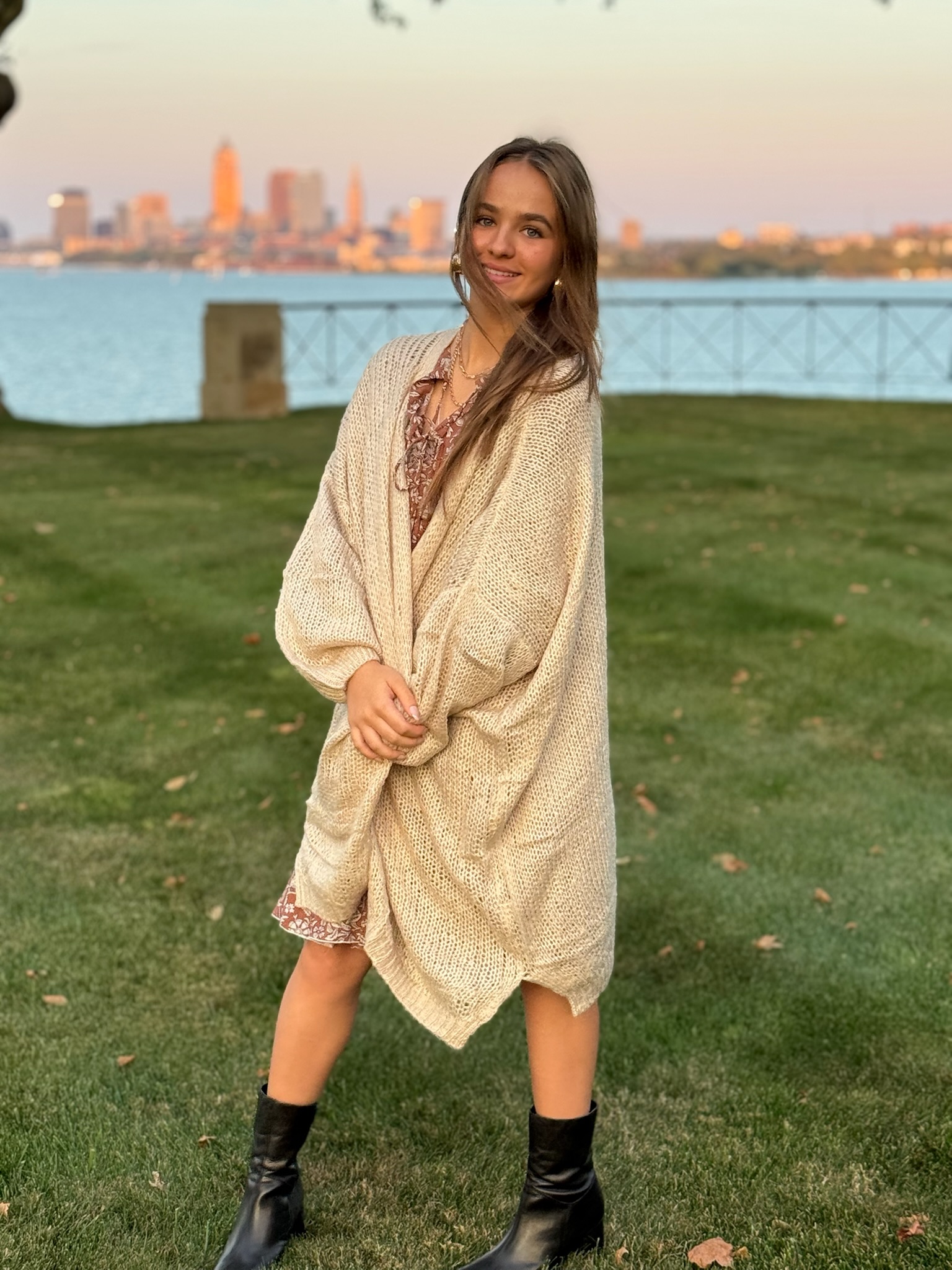 The Lova Long Cardigan is the definition of cozy elegance. With its relaxed, oversized fit and sweeping length, this knit layers effortlessly over dresses, denim, or loungewear. The open-front design and soft texture make it an easy go-to when you want comfort without sacrificing style.
