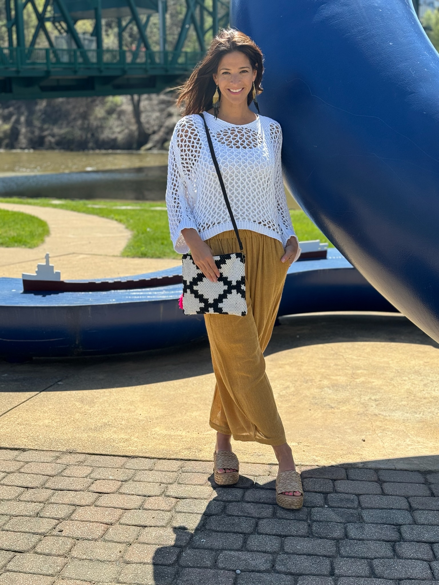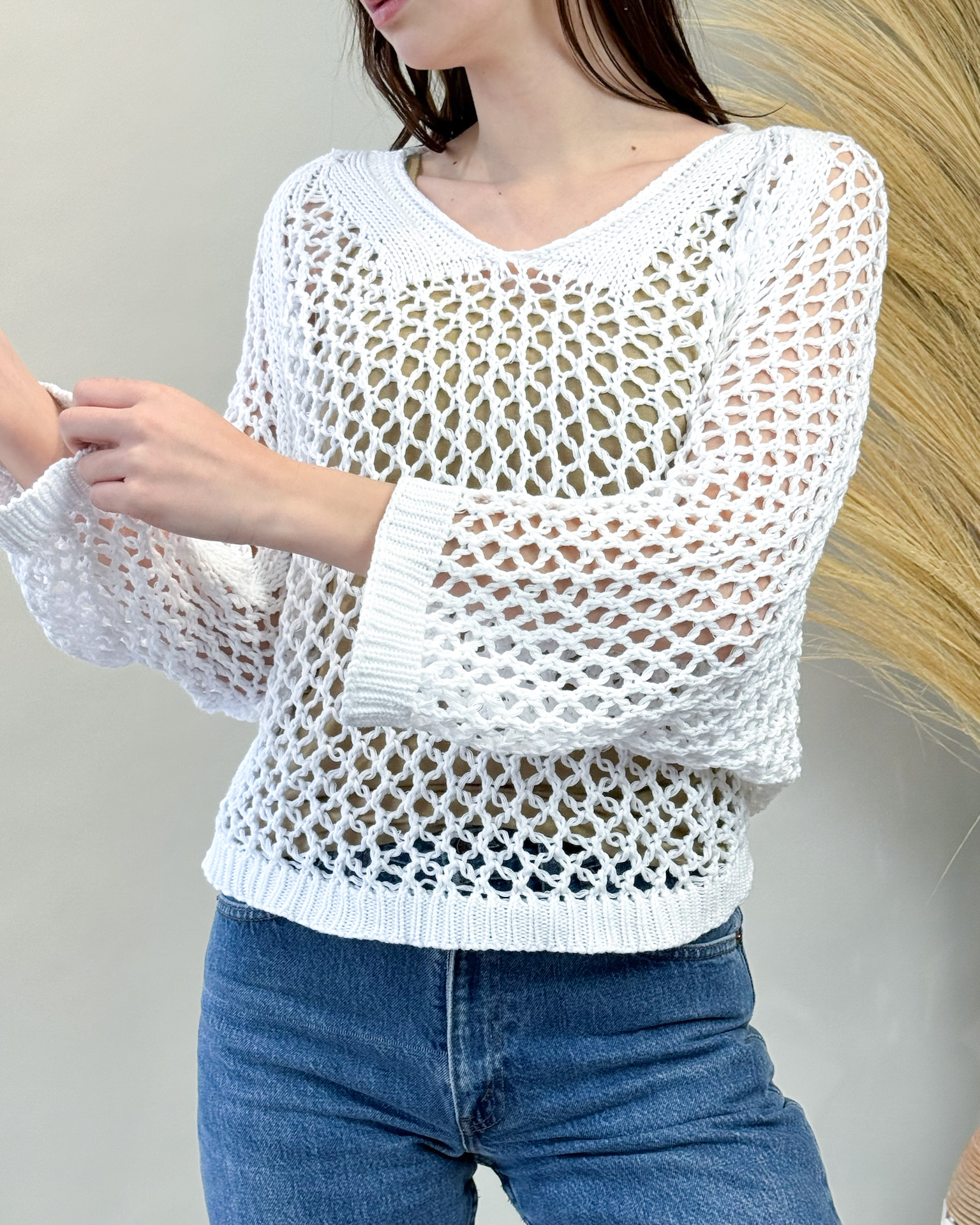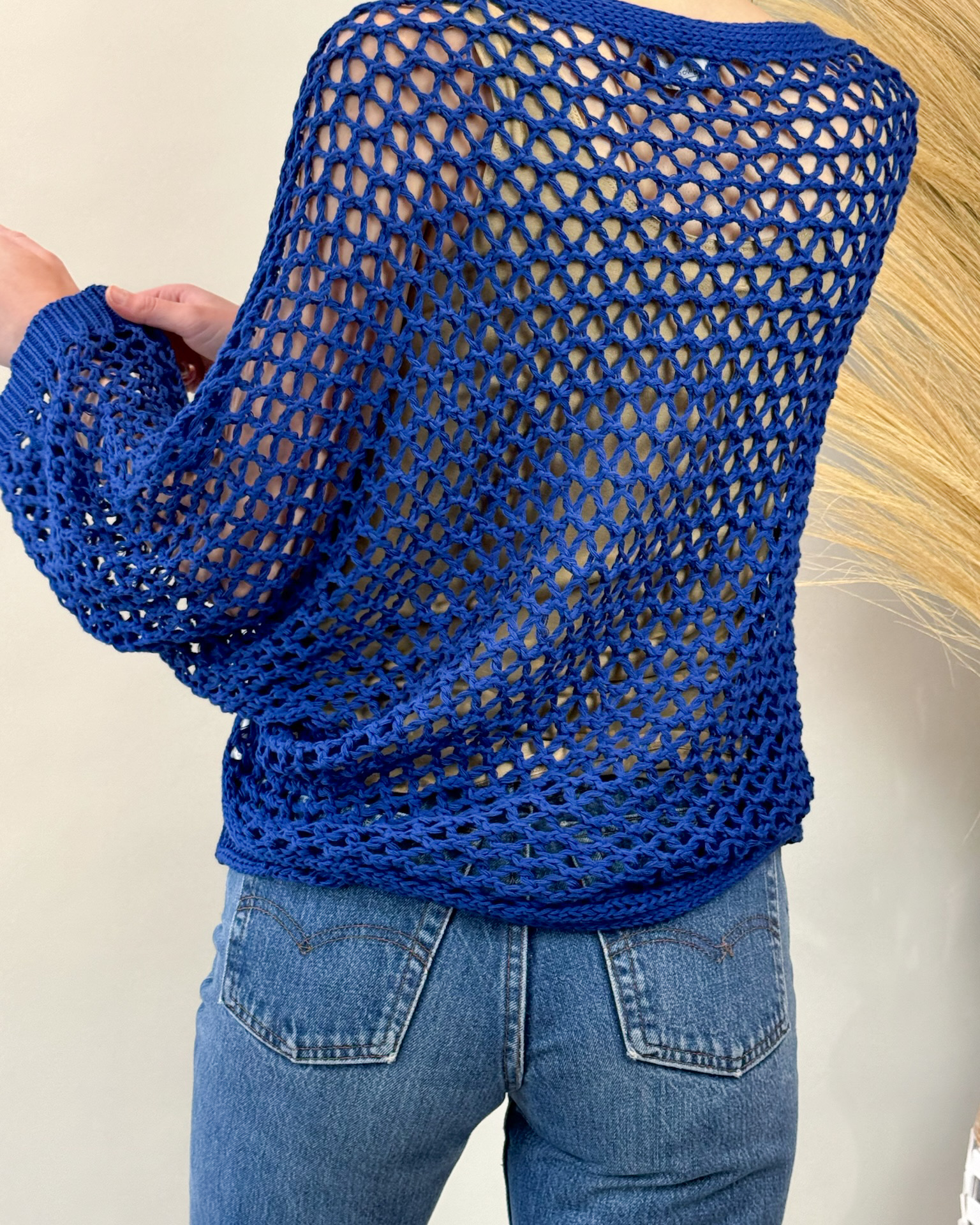 The Luzia Knit is a lightweight essential for breezy summer days and cool summer evenings. Crafted with a breathable wide knit and featuring long sleeves, it offers just the right amount of coverage for those unpredictable weather changes. The intricate neckline details adds a touch of elegance without adding extra weight, making it perfect for layering over tank tops or pairing with shorts for a chic summer look. Stay effortlessly stylish and comfortable in our Luzia Knit, designed to keep you cool and chic all season long.