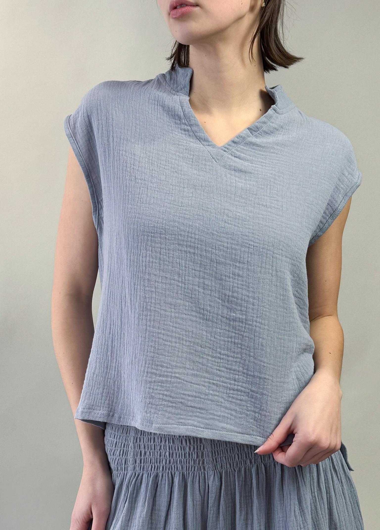Light, airy, and effortlessly elegant—the Breezy Gauze Top is a warm-weather essential. Crafted from soft, breathable fabric in dreamy pastel hues, it features a Mandarin collar for a touch of refined simplicity. Handmade in small batches using sustainable practices, this top blends comfort with conscious style. Perfect for layering or wearing solo, it’s designed to move with you from sun-soaked days to relaxed evenings.