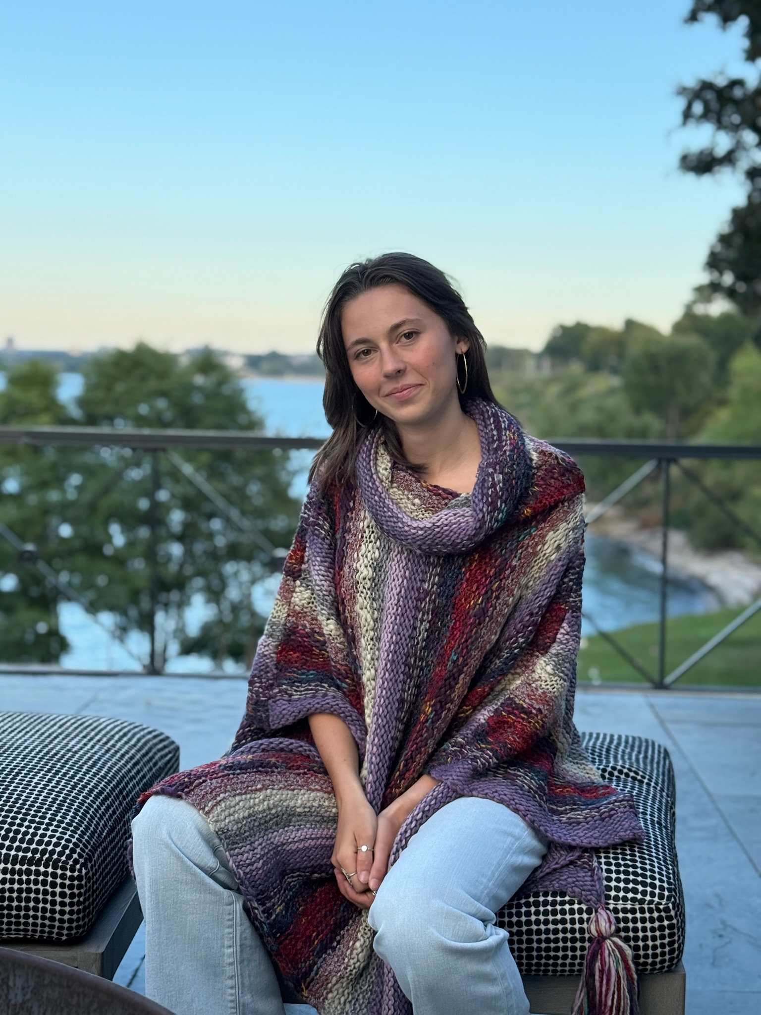 Wrap yourself in warmth and artistry with the Margaret Blanket Poncho. Handcrafted in small batches exclusively for Banyan Tree, this cozy piece features a chunky knit design with rich stripes of color and oversized tassel details. The relaxed cowl neckline and draped silhouette make it as comfortable as it is striking, perfect for layering on crisp days or curling up in style. A true statement of Figwood’s signature blend of comfort, craftsmanship, and individuality.