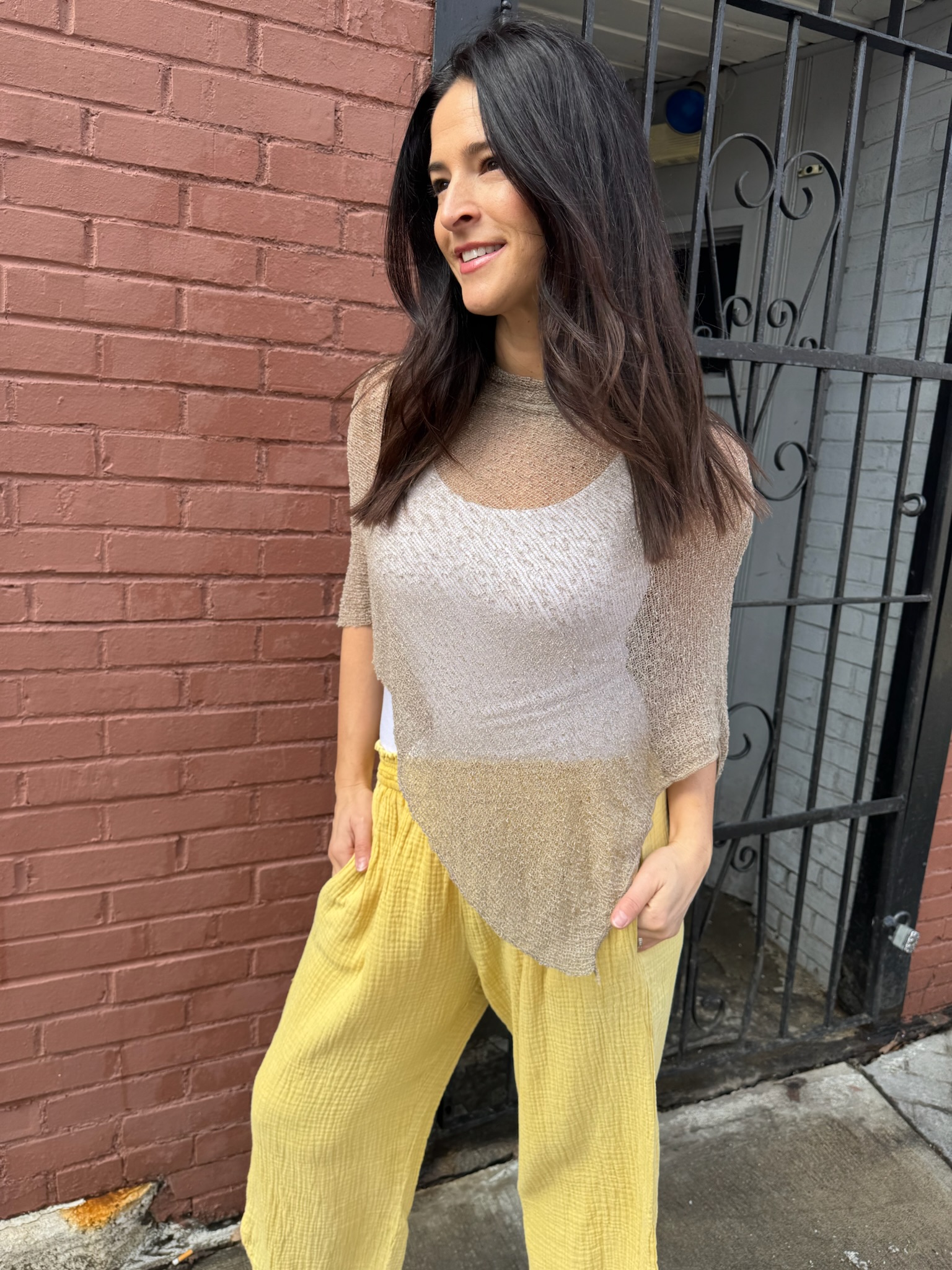 The Mesh Poncho is a lightweight layer designed to bring texture and movement to any outfit. Its airy open-knit weave drapes softly over the body, creating an effortless silhouette with flowing lines and relaxed elegance. The asymmetrical hem adds a modern touch while allowing it to pair beautifully over dresses, pants, or simple tops. Thoughtfully crafted with breathable materials, it’s a versatile piece perfect for layering in every season.