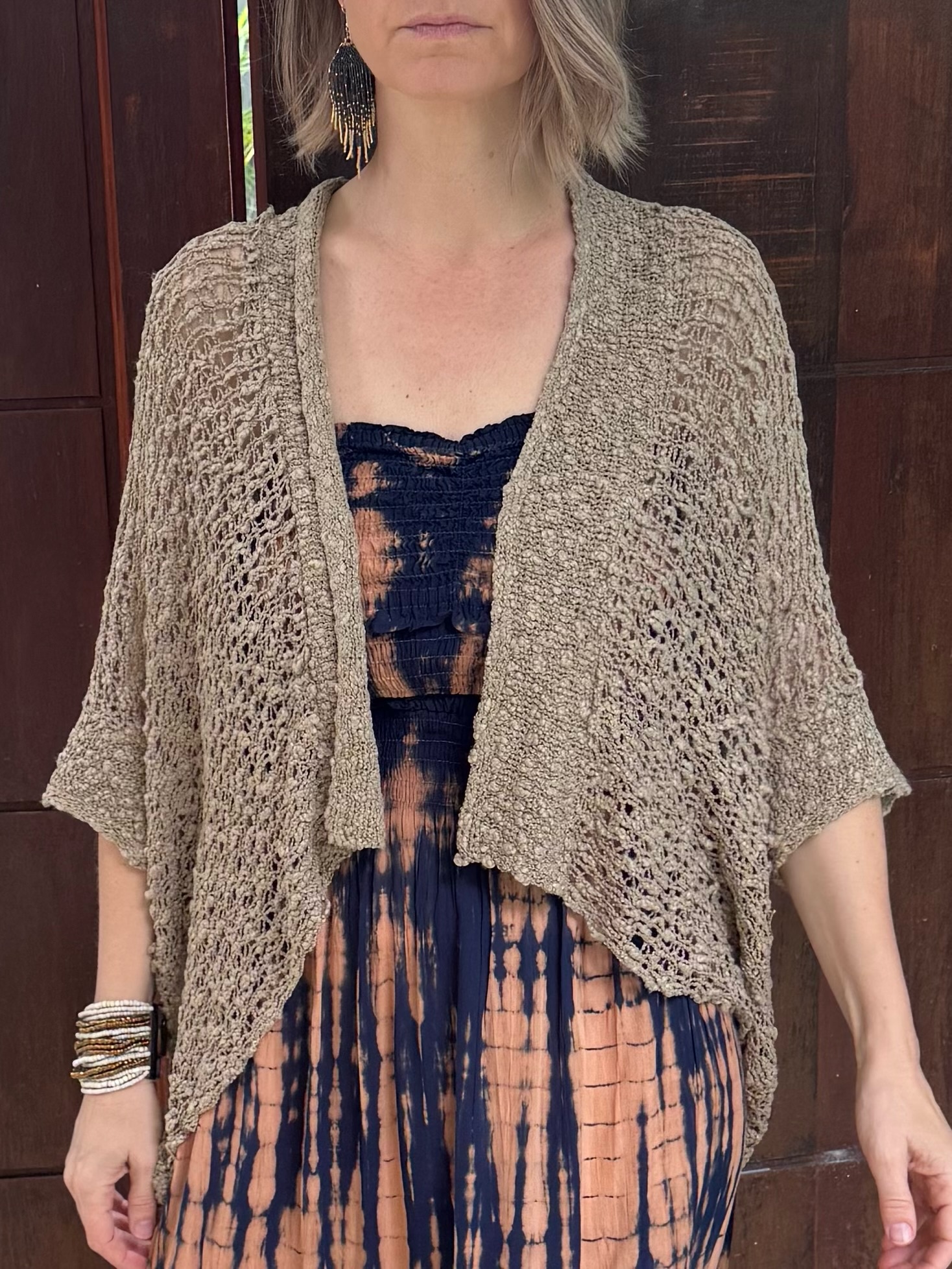 Our popular Open Popcorn Cardigan boasts a wide-knit popcorn texture, adding a touch of cozy charm to any outfit. Made from high-quality knit fabric, this cardigan is a yearly favorite, loved for its versatility and timeless style. Perfect for layering during the warmer months, its effortlessly adds a layer of warmth and texture to your look whil keeping you stylish and comfortable. Elevate your wardrobe with this must-have piece the tansitions seamlessly from spring to summer.