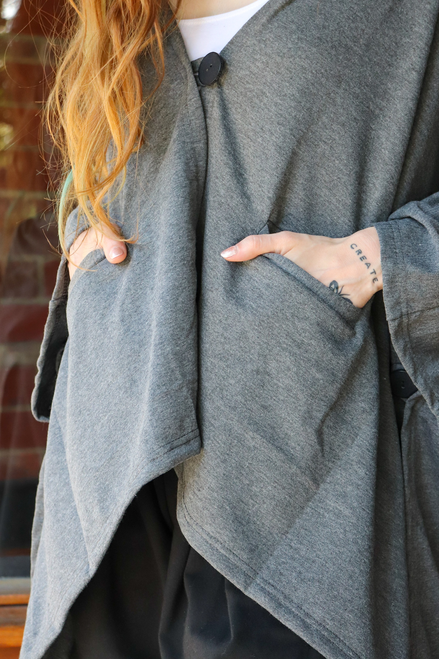 Wrap yourself in comfort with our Oversized Hoodie w/ Button featuring a cozy texture. With a button closure, pockets, and hood, it's the perfect blend of style and functionality. Embrace the cozy vibes while making a fashion statement that keeps you warm and stylish.