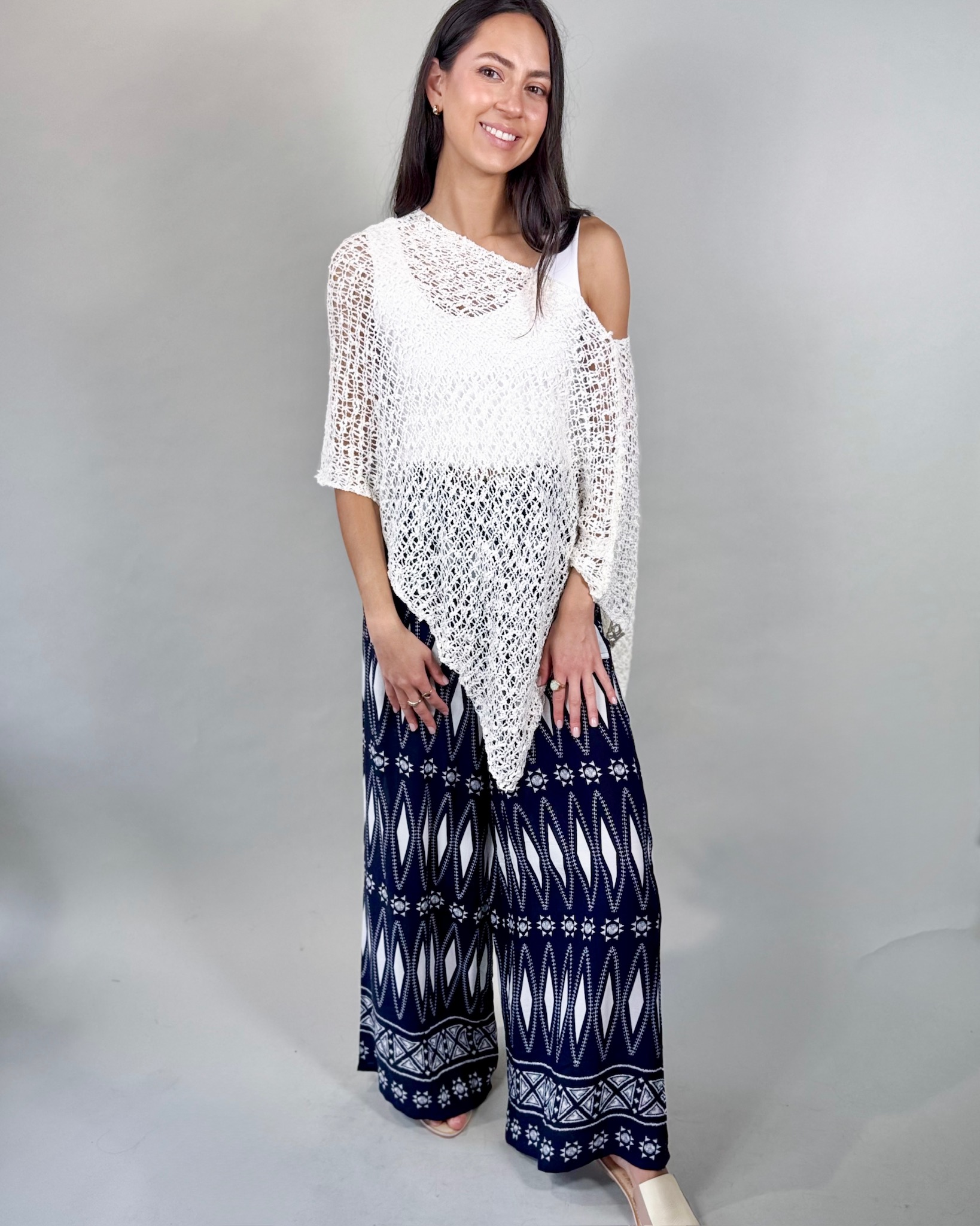 Whether you're headed to the beach or grabbing dinner, pack the Popcorn Poncho for quick styling. Featuring variegated yarn for added texture, this loose knit poncho drapes over anything from a dress to simple tank. This perennial favorite comes in one-size and multiple colors.