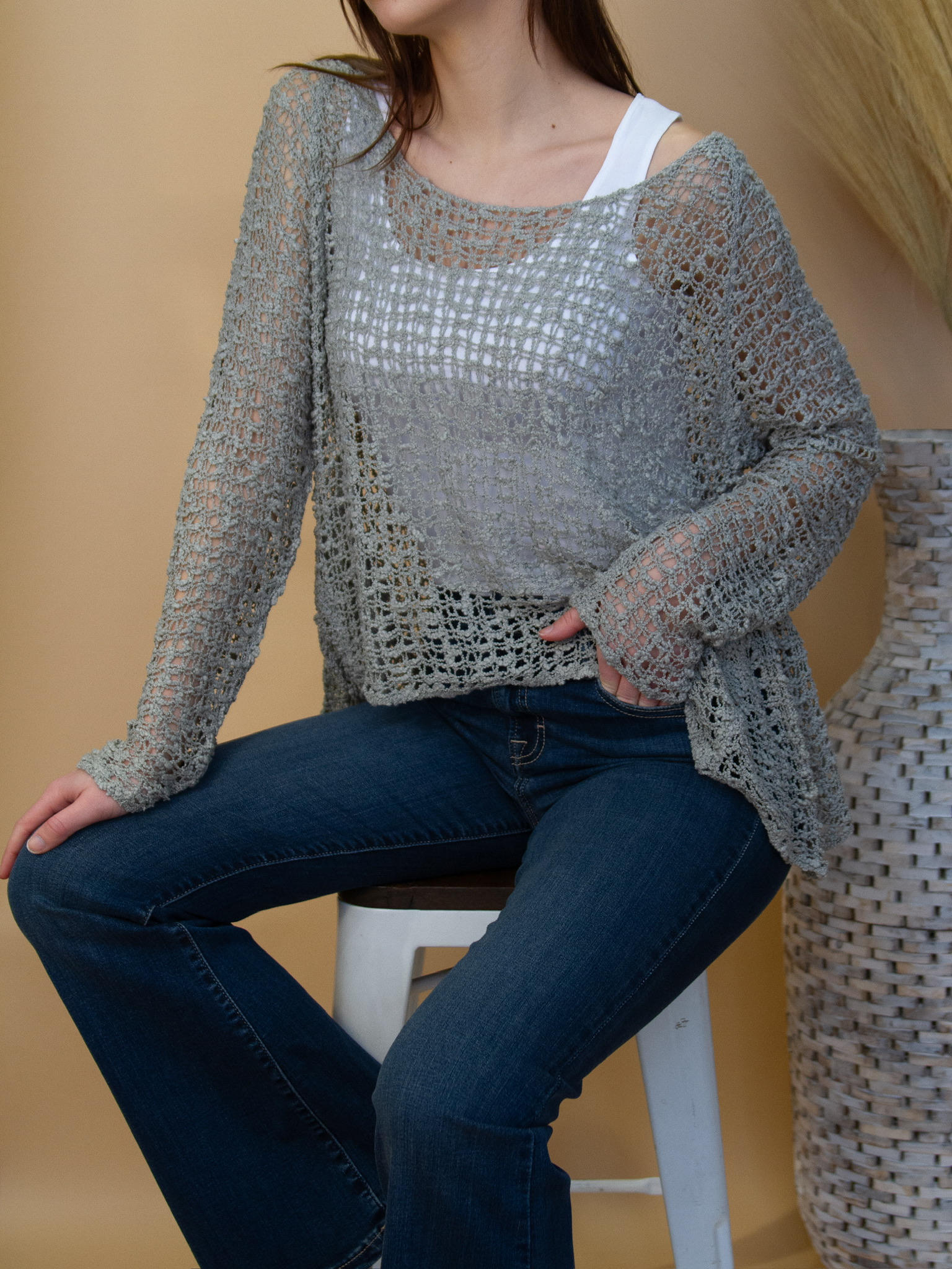 Experience the Pullover Popcorn Sweater, a customer favorite and one of our perennial best sellers. Its distinctive popcorn wide knit texture not only makes a style statement but is also perfect for layering. Enjoy its year-round versatility, elevating your wardrobe with this must-have piece.