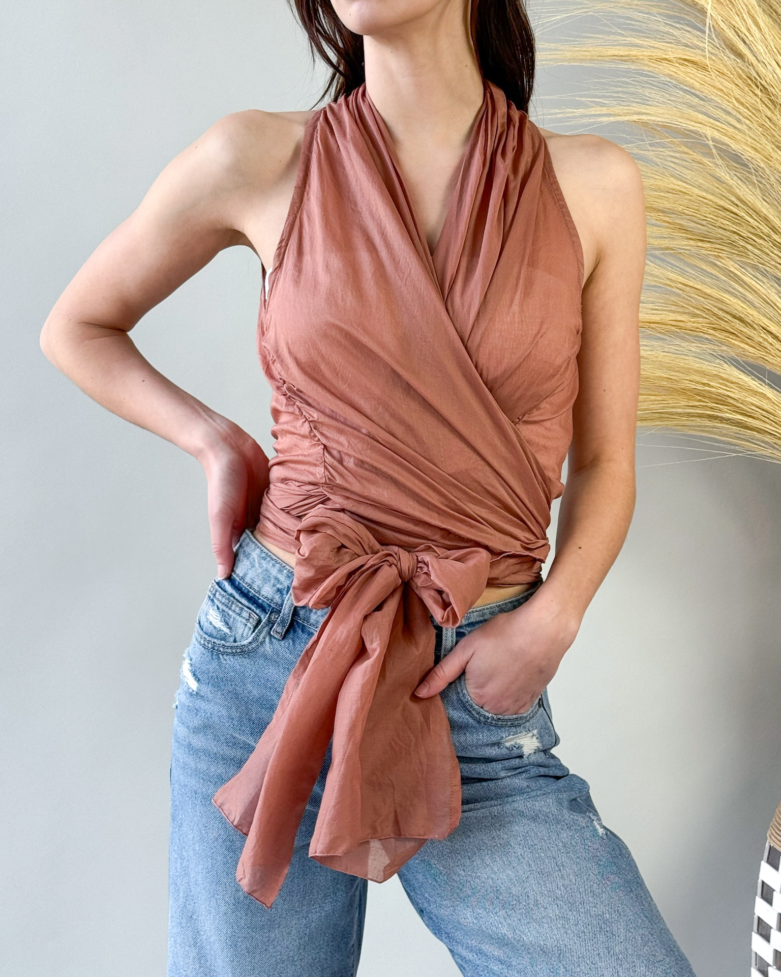 Our Shanti Wrap Top is a versatile and stylish piece that offers endless possibilities. This lightweight top can be wrapped in many different ways, allowing you to create various looks to suit your style. Available in four neutral colors, it effortlessly pairs with any bottoms for a chic and sophisticated ensemble. Elevate your wardrobe with the Shanti Wrap Top and unlock the versatility it has to offer.