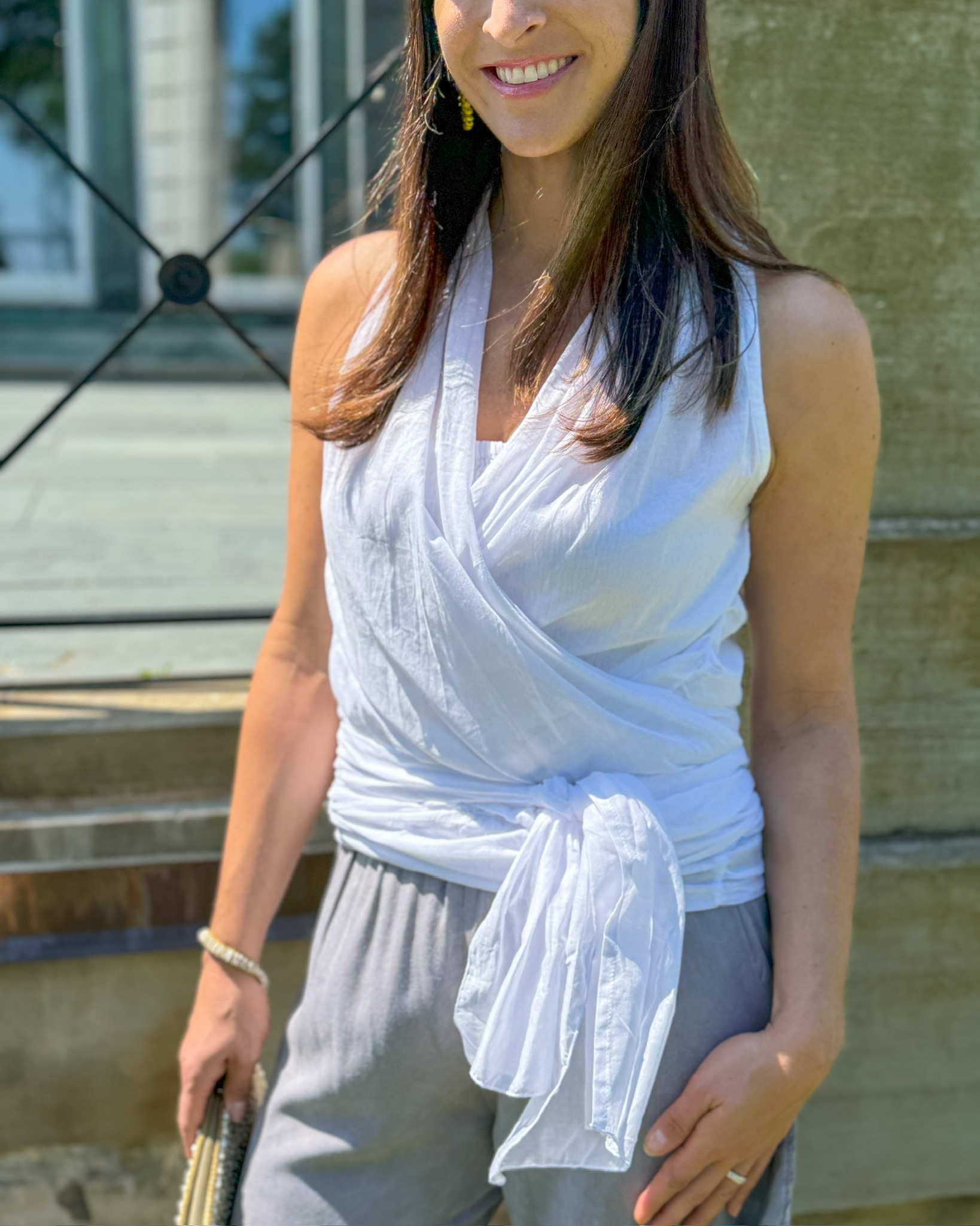 Our Shanti Wrap Top is a versatile and stylish piece that offers endless possibilities. This lightweight top can be wrapped in many different ways, allowing you to create various looks to suit your style. Available in four neutral colors, it effortlessly pairs with any bottoms for a chic and sophisticated ensemble. Elevate your wardrobe with the Shanti Wrap Top and unlock the versatility it has to offer.
